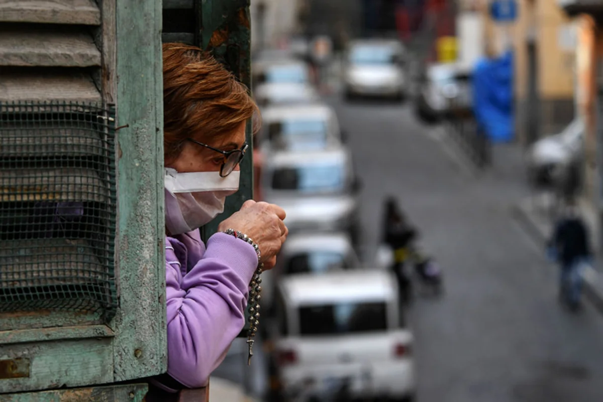 Mieszkanka Neapolu modli się na balkonie w czasie pandemii koronawirusa. 21 marca, Włochy. W Lombardii, epicentrum epidemii we Włoszech, powoli, ale systematycznie spada liczba zmarłych i hospitalizowanych pacjentów z COVID-19. "Na podstawie danych o redukcji hospitalizacji, liczby pacjentów na intensywnej terapii i zmarłych możemy potwierdzić, że wprowadzone i przedłużone ograniczenia mają wpływ na tego wirusa" – poinformował w niedzielę, 12 kwietnia, Luca Richeldi, ordynator oddziału pulmonologii w klinice Gemelli.
