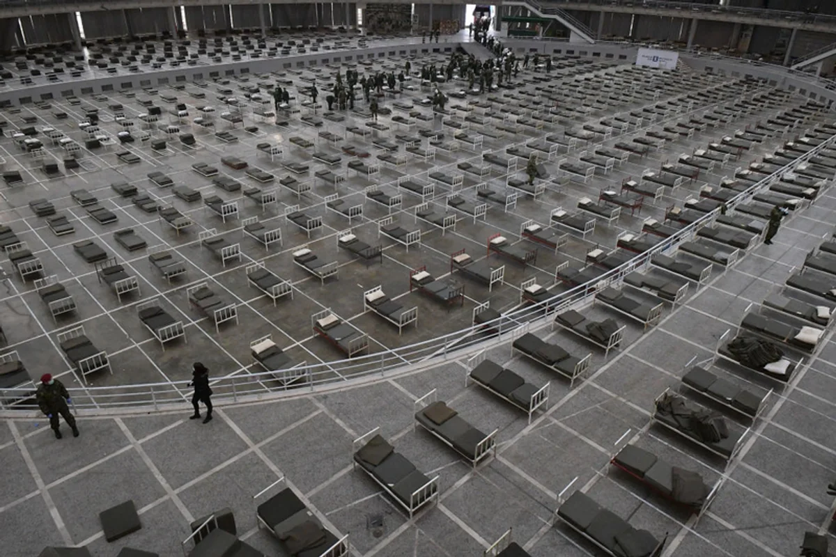 Na tymczasowy szpital przekształcono halę, w której zazwyczaj odbywają się targi książki. Wszystkie łóżka przeznaczone są dla pacjentów zarażonych koronawirusem.