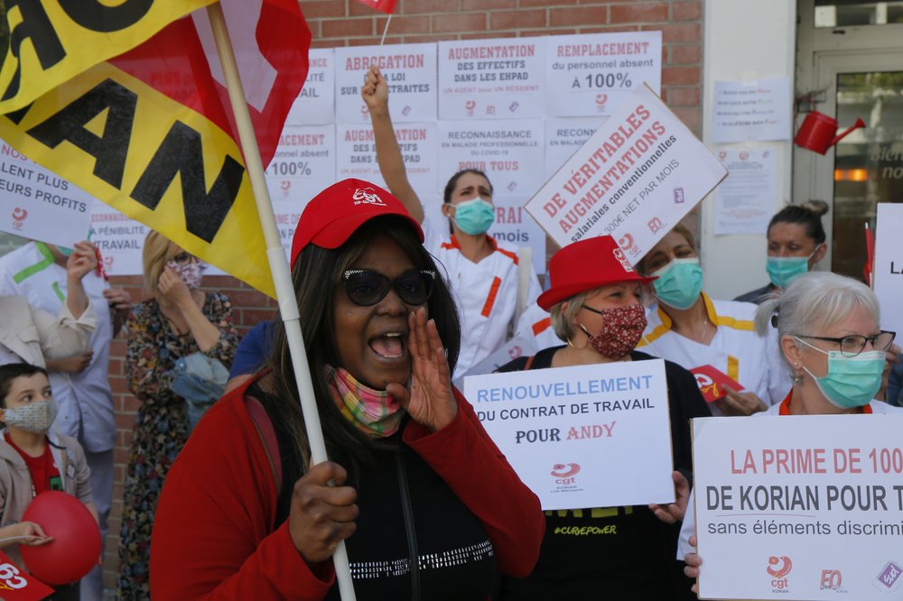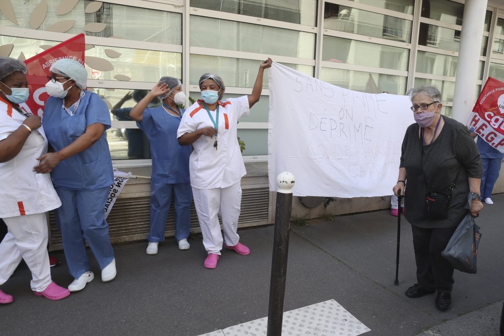 PARIS (AP) - Pracownicy dużej grupy francuskich domów spokojnej starości wzięli w poniedziałek udział w protestach w całej Francji, aby wezwać do lepszego wynagrodzenia w związku z kryzysem koronawirusa.