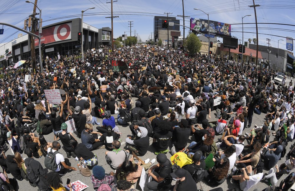 - W Los Angeles protestujący intonowali „Black Lives Matter”, kilka centymetrów od osłon twarzy oficerów. Policja użyła pałek, aby odepchnąć tłum, i wystrzeliła gumowe kule. Pokryty graffiti samochód policyjny spłonął na ulicy.