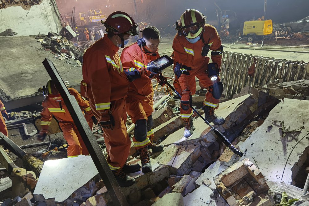 Druga eksplozja nastąpiła, gdy ciężarówka spadła na warsztat fabryczny, powiedział Xinhua.