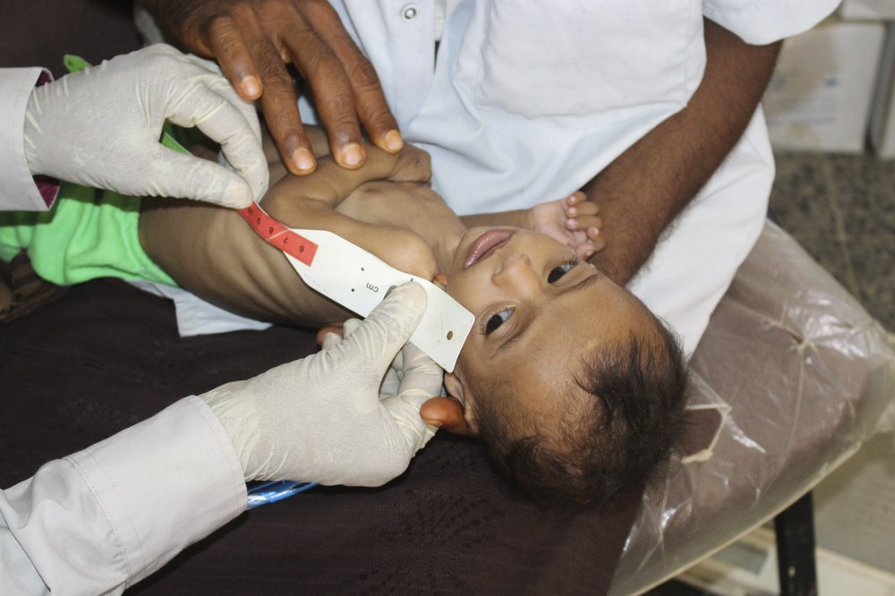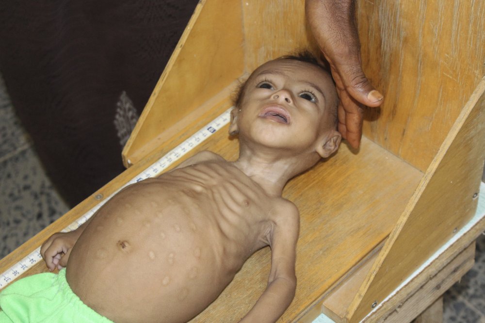 AL-HANABIYA, Jemen (AP) - Gdy Issa Nasser urodził się pod koniec ubiegłego roku w wiosce w północnym Jemenie, jego waga wynosiła około 3 kilogramów, czyli 6,6 funta. Teraz siedmiomiesięczne niemowlę waży prawie tyle samo - mniej niż połowa średniej wagi w jego wieku - i ma cienką jak wafel skórę i wychudzone kończyny.
