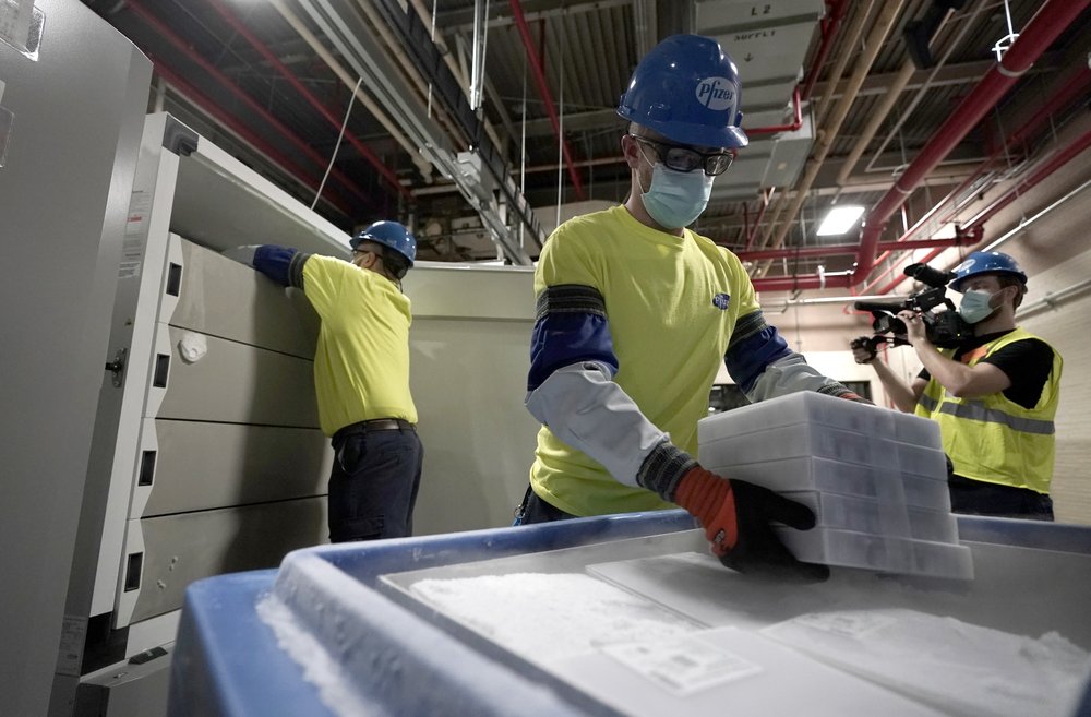 PORTAGE, Michigan (AP) - Pierwsza z wielu fiolek ze szczepionką COVID-19 zapakowanych w zamrażarkę trafiła w niedzielę do miejsc dystrybucji w całych Stanach Zjednoczonych, gdy liczba zgonów w wyniku pandemii zbliżyła się do przerażającego nowego kamienia milowego 300 000. Wprowadzenie szczepionki Pfizer, pierwszej zatwierdzonej przez Food and Drug Administration, zapoczątkowuje największy wysiłek w zakresie szczepień w historii Stanów Zjednoczonych - taki, który urzędnicy służby zdrowia mają nadzieję, że amerykańska opinia publiczna zaakceptuje, nawet jeśli niektórzy wyrazili początkowy sceptycyzm lub zmartwienie. Oczekuje się, że od poniedziałku zdjęcia będą wykonywane dla pracowników służby zdrowia i mieszkańców domów opieki. Szybki transport jest kluczowy dla szczepionki, zwłaszcza że musi być ona przechowywana w ekstremalnie niskich temperaturach - około 94 stopni poniżej zera. Wczesną niedzielę pracownicy firmy Pfizer - ubrani w fluorescencyjną żółtą odzież, kaski i rękawiczki - nie tracili czasu, pakując fiolki do pudełek.