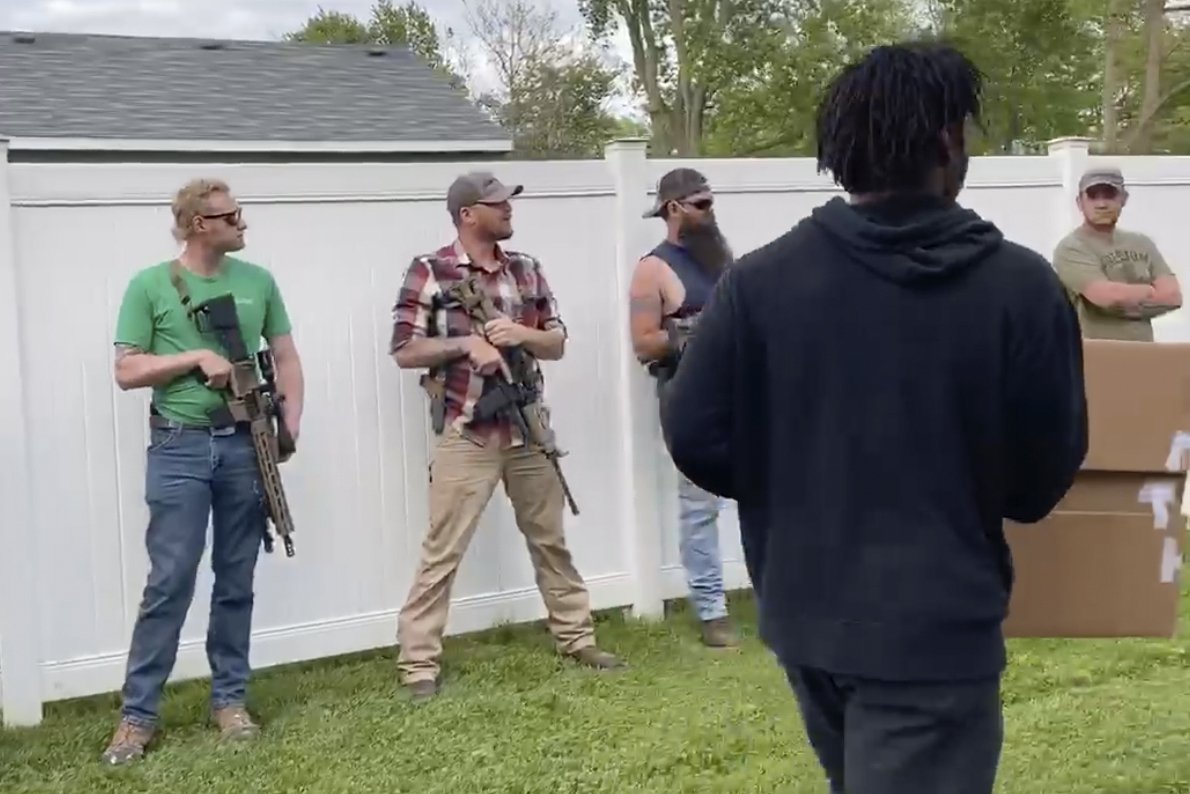 Film, który krążył w mediach społecznościowych, pokazuje 21 osób stojących na szlaku rowerowym w pobliżu centrum Crown Point w stanie Indiana, obserwujących protestujących maszerujących obok nich w poniedziałek podczas pokojowego protestu przeciwko brutalności policji i rasizmowi. Ośmiu świadków trzymało broń palną, co stanowi akt szefa policji w Crown Point, Pete Land, który jest chroniony na mocy prawa stanowego.