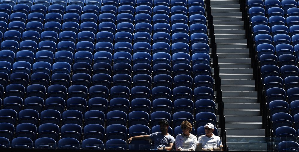 Widzowie oglądają mecz trzeciej rundy między Sereną Williams ze Stanów Zjednoczonych i Anastasią Potapovą z Rosji podczas mistrzostw tenisowych Australian Open w Melbourne, Australia, w piątek, 12 lutego 2021 r. (AP Photo / Andy Brownbill)