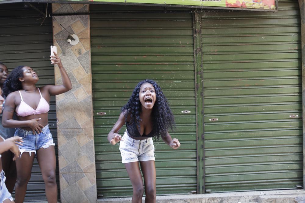 Około 50 mieszkańców Jacarezinho wyszło na wąską uliczkę, aby śledzić członków stanowej komisji praw człowieka, którzy przeprowadzili inspekcję po strzelaninach. Krzyczeli „Sprawiedliwość!” klaszcząc w dłonie. Niektórzy wznieśli w powietrze prawą pięść.