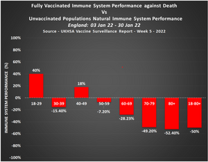 Rzeczywista skuteczność szczepionki Covid-19 tak zwana przeciwko śmierci w Anglii między 3 stycznia a 30 stycznia 2922 r. wynosiła zaledwie -110,24% w latach 80-tych, -97% u osób w wieku 70-79 lat i -98,14% średnio u wszystkich dorosłych w wieku powyżej 18 lat.